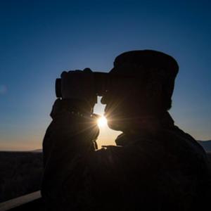 新疆生產(chǎn)建設兵團第10師185團職工馬軍武(右)在巡邏途中(4月9日攝)。