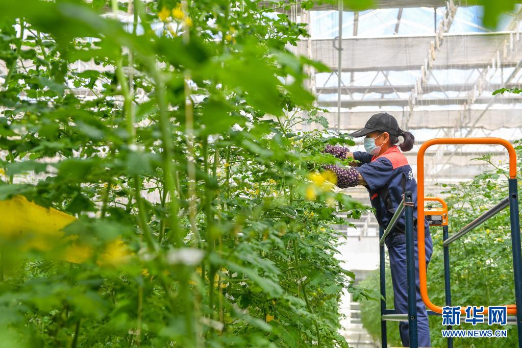 在吉林省吉林市永吉縣卓遠(yuǎn)農(nóng)業(yè)種植專業(yè)合作社的“植物工廠”,農(nóng)民趙玉霞在修整作物(4月14日攝)。新華社記者 張楠 攝