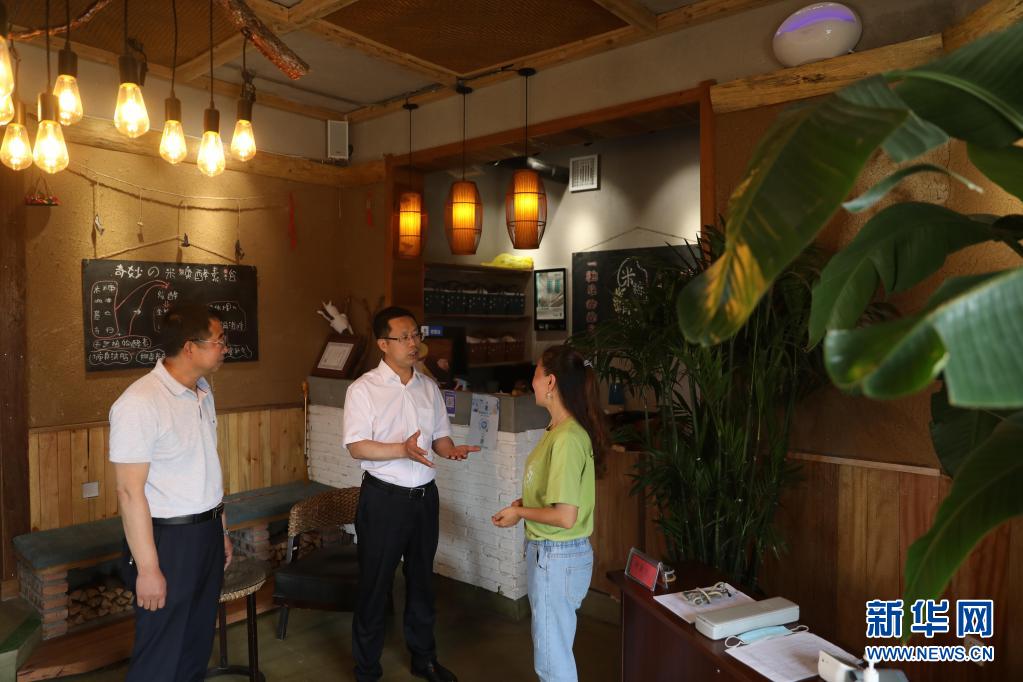 7月2日,在沈陽市沈北新區(qū)興隆臺街道單家村,聞然(中)在調(diào)研民宿發(fā)展情況。新華社記者 楊青 攝