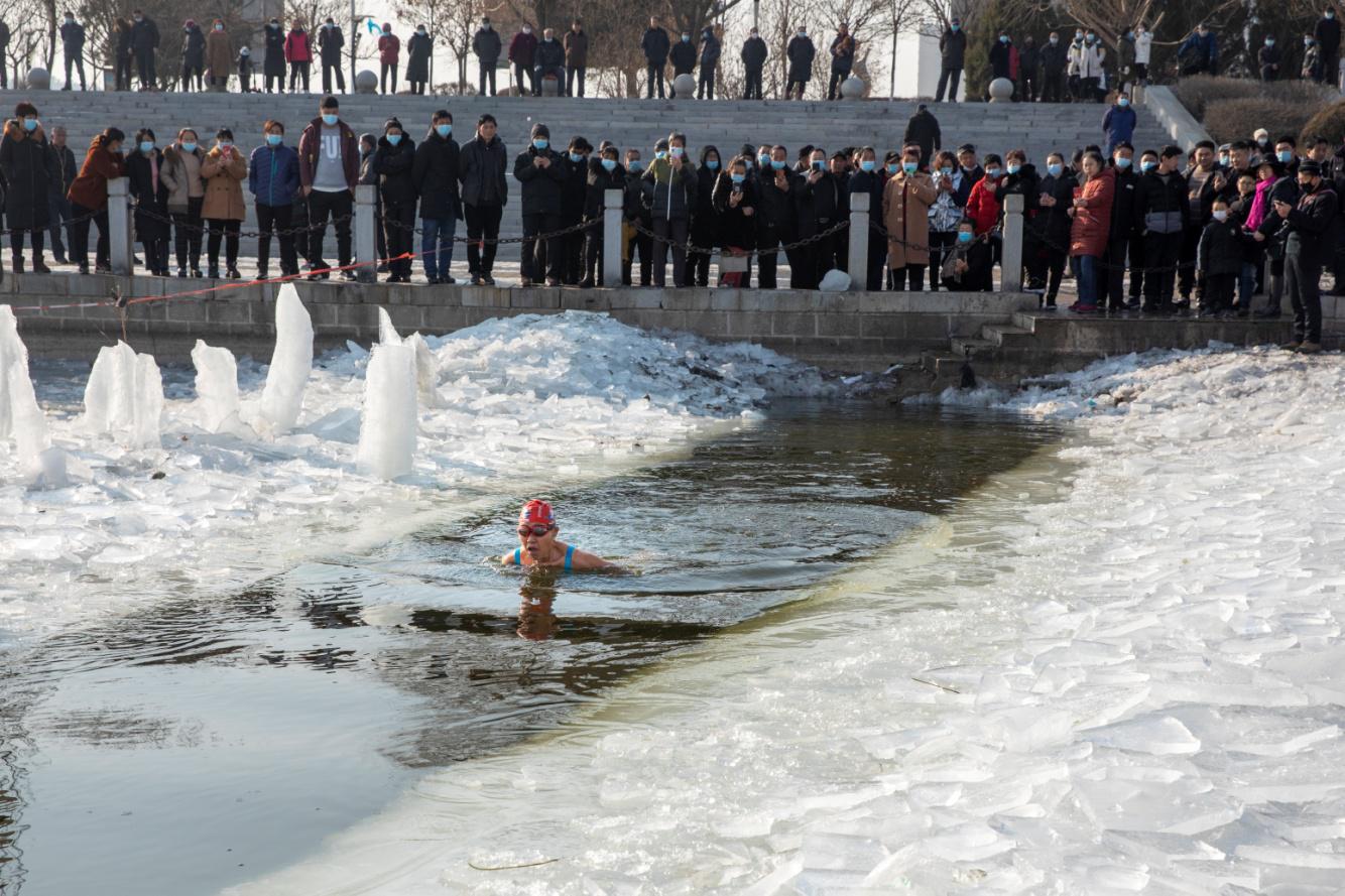 吃完再說玩,北國凌源,這里可從來不貓冬,他們把冰天雪地當(dāng)成了激情飛揚(yáng)的秀場。大凌河的冰面愣生生被鑿出一條“長河”,成為冬泳愛好者的基地。
