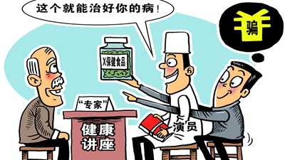 近日有媒體報道,網(wǎng)上有人打著中醫(yī)的幌子賣課圈錢。那些自稱“神醫(yī)傳人”“國醫(yī)名師”的講師,根本沒有培訓(xùn)資質(zhì)。養(yǎng)生保健“坑老”騙局其實并不新鮮??域_的一大“訣竅”是,渲染和利用老年人的健康焦慮。針對??永先说摹梆B(yǎng)生騙局”,必須持續(xù)加大打擊力度,進(jìn)一步加強(qiáng)保健品監(jiān)管。