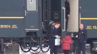 秀我中國丨冰天雪地溫情一幕:綠皮火車靜靜等待3名旅客