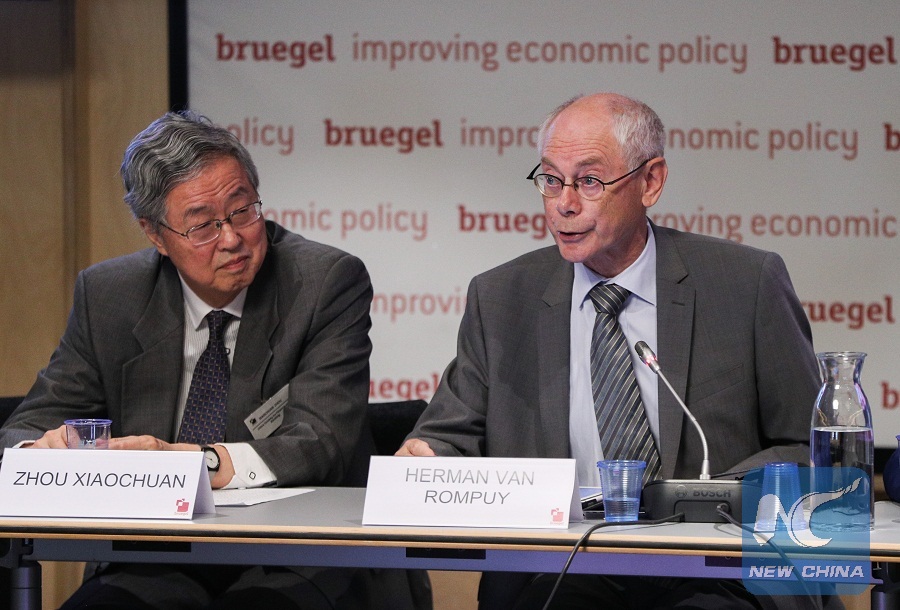 Meanwhile, echoing Van Rompuy, Zhou Xiaochuan, president of the China Society for Finance and Banking, calling on China and Europe to hold a clear view of the trade war erupted largely from the "America First" policy.