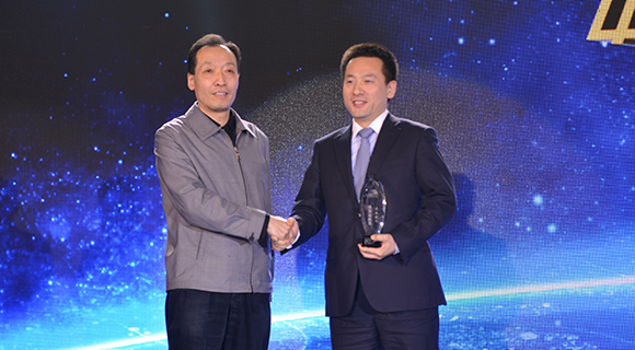 1月15日,新華網(wǎng)常務副總裁魏紫川(右一)為倍杰特、豐田中國頒發(fā)2014年度中國企業(yè)社會責任最佳綠色環(huán)保獎。