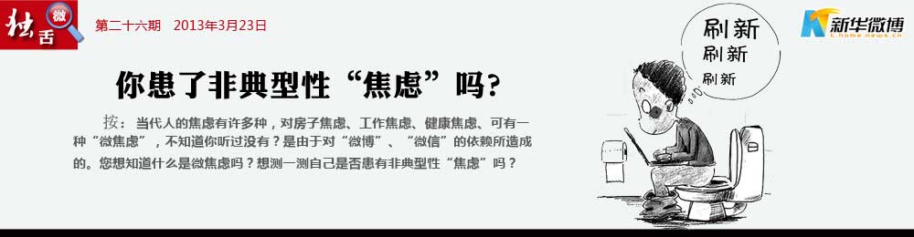 親,你出現(xiàn)“微焦慮”癥狀了嗎? 不“織圍脖”、不接發(fā)微信就寢食難安,出現(xiàn)焦慮、依賴、強迫等心理問題。這就是患上了微博焦慮癥,簡稱為“微焦慮”。