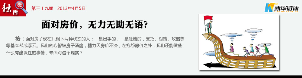 【當(dāng)“房”已成往事】 房事不要再提,政策已多風(fēng)雨,縱然現(xiàn)在買不起國五條后更買不起。真的要離了再娶,讓明天好好繼續(xù),你就不要再苦苦追問家庭信息。房價他是個難題,讓人目眩神迷,限價房或許可以廉租房卻太不容易。權(quán)力他不曾離去,房價就漲在那里,我對家仍有愛意,限購讓我無能為力。