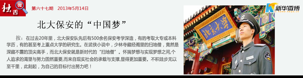 心有多大,舞臺就有多大,有夢就有希望,北大的保安有夢??筛匾氖牵麄儞碛辛四茏寜魧?shí)現(xiàn)的舞臺,北大保安已經(jīng)擁有了。