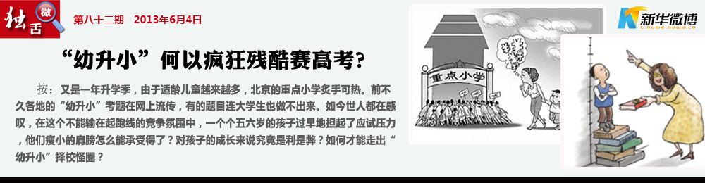 【孩子精神分裂】 A校搞面談,B校考奧數(shù),C??粗夭潘?,D校要英語(yǔ)會(huì)話,孩子們考前往往要精神分裂好長(zhǎng)一段時(shí)間,學(xué)生進(jìn)一次校門就得背一次考試圣經(jīng)。
