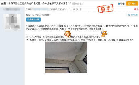冰火兩重天,盡管業(yè)績方面成績單華麗,但另一方面中海全國多個項目卻問題不斷,飽受詬病。而開發(fā)商的中海地產(chǎn)態(tài)度冷淡、甚至漠視業(yè)主的訴求。人們不禁質(zhì)疑:身為大型央企,社會責(zé)任何在?[詳細] |