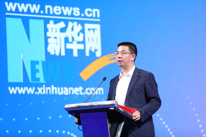 5月27日,巴彥淖爾市人民政府與新華網(wǎng)戰(zhàn)略合作簽約儀式在京舉行。圖為新華網(wǎng)黨委常委、副總裁申江嬰致辭。新華網(wǎng) 張 斌 攝