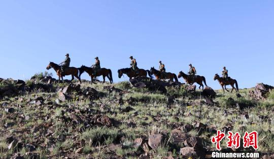 ????6月以來,正是新疆北部牧民向夏牧場轉(zhuǎn)場的高峰期。15日,新疆邊防總隊(duì)阿勒泰邊防支隊(duì)吉木乃邊防大隊(duì)組織護(hù)邊員成立“邊境馬隊(duì)”,克服山路艱險、氣候炎熱、蚊蟲叮咬等困難,赴邊境一線實(shí)地勘查,及時掌握前沿動態(tài),確保邊境區(qū)域牧民轉(zhuǎn)場安全。