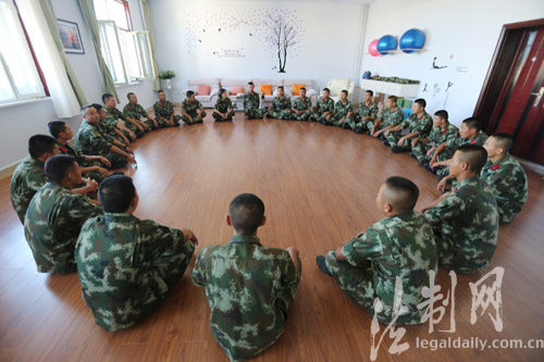 圖為心理咨詢師為官兵開展團(tuán)體心理輔導(dǎo)