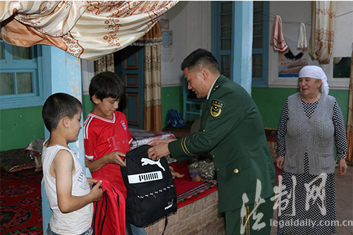 圖為臨近開學(xué),教導(dǎo)員楊強(qiáng)還為阿米古麗小孩帶去了學(xué)習(xí)用品