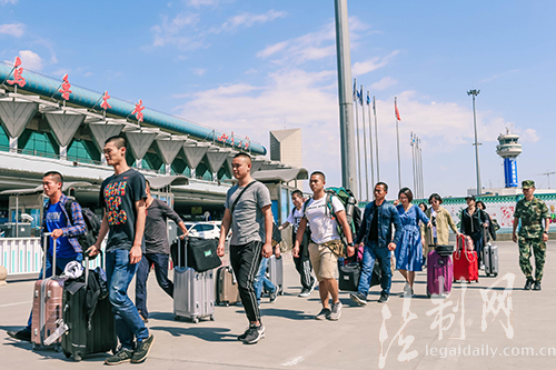 圖為新學(xué)員抵達(dá)烏魯木齊機(jī)場(chǎng)