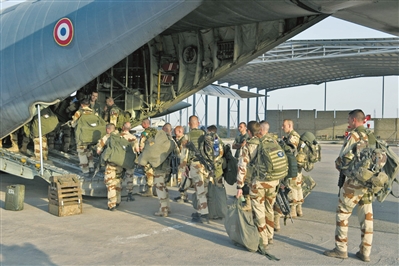 ????參加“藪貓行動”的“食雀鷹部隊”士兵登機(jī)前往馬里