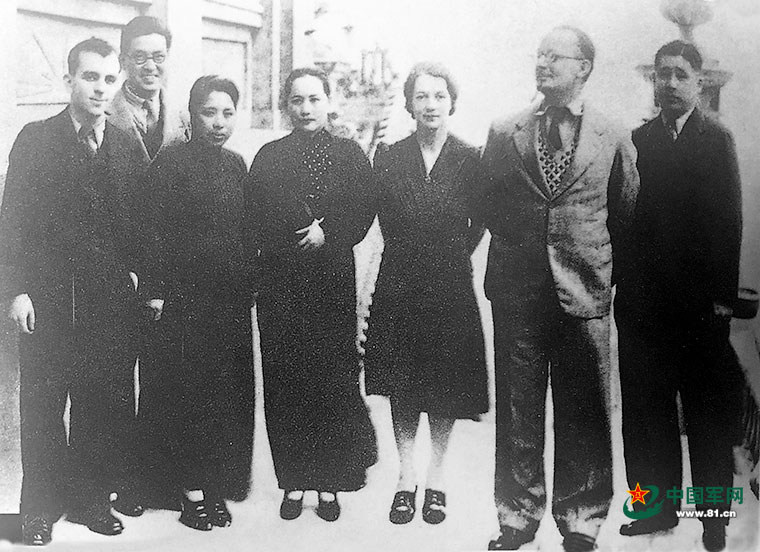 ????1938年6月,八路軍駐香港辦事處主任廖承志在香港與保衛(wèi)中國同盟中央執(zhí)行委員會(huì)主席宋慶齡及其他委員的合影。右一為廖承志,右四為宋慶齡。