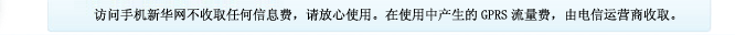 手機新華網(wǎng)是新華網(wǎng)的手機無線門戶網(wǎng)站,是中國最具權(quán)威的免費手機新聞網(wǎng)站之一。歡迎各地電信運營商以及廣告界、企業(yè)界、商務(wù)界、傳媒界等各界人士與我們聯(lián)系,精誠合作,實現(xiàn)共贏。電話:010-63070908,E-mail:xhsjb@xinhuanet.com