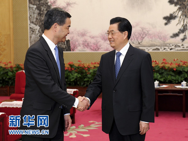?? 新華網(wǎng)快訊:國家主席胡錦濤21日下午在中南海會見了來京述職的香港特別行政區(qū)行政長官梁振英。