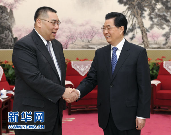 ??? 新華網(wǎng)快訊:國家主席胡錦濤21日下午在中南海會(huì)見了來京述職的澳門特別行政區(qū)行政長(zhǎng)官崔世安。
