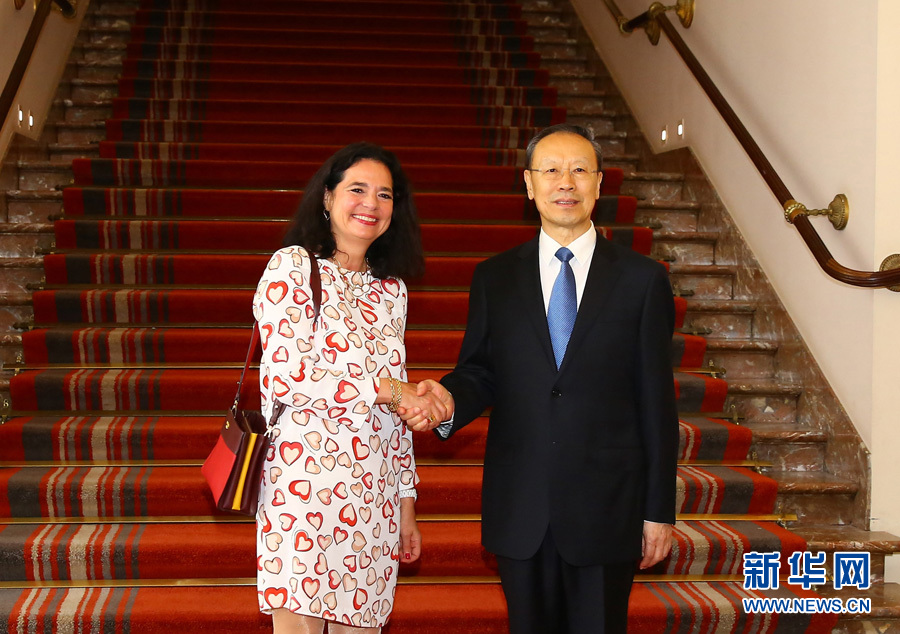 7月4日,在比利時(shí)首都布魯塞爾,中共中央書(shū)記處書(shū)記、全國(guó)政協(xié)副主席杜青林(右)會(huì)見(jiàn)比利時(shí)聯(lián)邦參議長(zhǎng)德弗萊涅。應(yīng)德弗萊涅邀請(qǐng),杜青林率中共代表團(tuán)于7月4日至5日訪問(wèn)比利時(shí)。 新華社記者龔兵攝