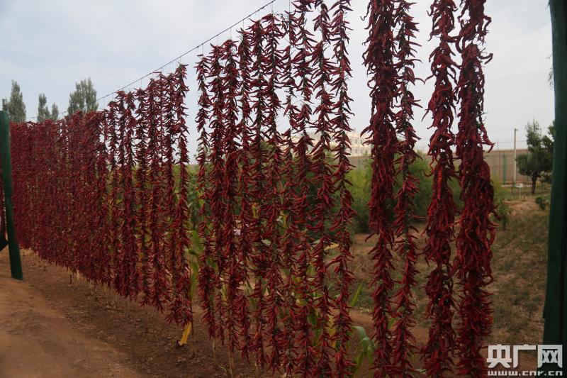 營(yíng)區(qū)曬的辣椒(央廣網(wǎng)記者 李建峰 攝)