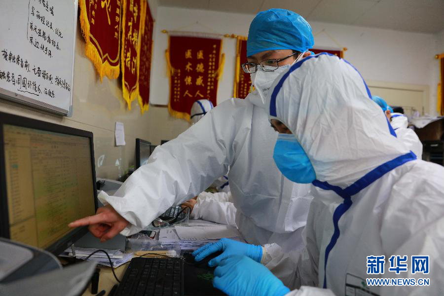 2月1日,在湖北省榮軍醫(yī)院發(fā)熱門診,醫(yī)生王琴(右一)和護士劉蕭(左二)接診發(fā)熱患者。 新華社發(fā)(劉中燦 攝)