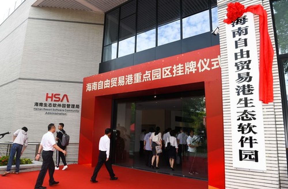 在海南澄邁縣拍攝的海南自由貿(mào)易港生態(tài)軟件園掛牌儀式現(xiàn)場(chǎng)。(新華社記者楊冠宇 攝)