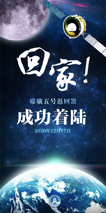 海報:回家!嫦娥五號返回器成功著陸 新華社記者 孟麗靜 編制
