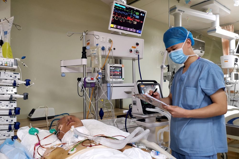12月18日,青島大學(xué)醫(yī)學(xué)院研究生蘇柯帆在醫(yī)院里實(shí)習(xí)。