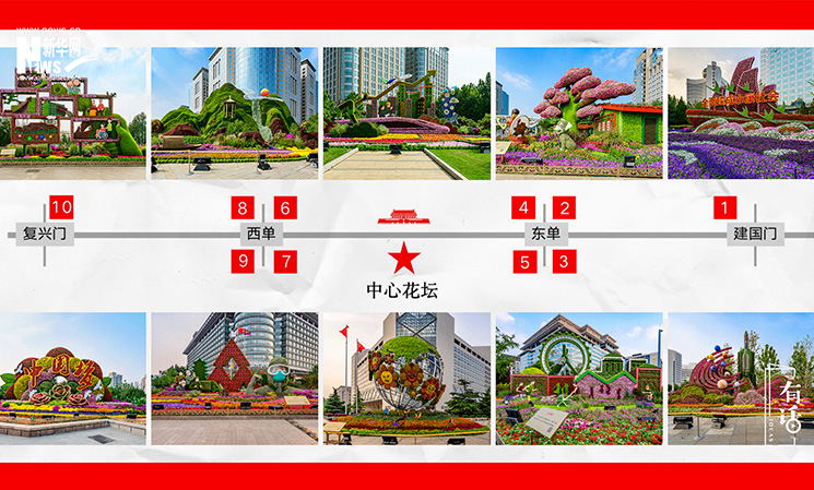 長(zhǎng)安街沿線(xiàn),從建國(guó)門(mén)到復(fù)興門(mén),布置了10組立體花壇,體現(xiàn)決勝全面小康,共襄復(fù)興偉業(yè)的壯闊藍(lán)圖。