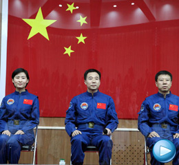 執(zhí)行天宮一號(hào)與神舟九號(hào)載人交會(huì)對(duì)接任務(wù)航天員乘組與記者見面