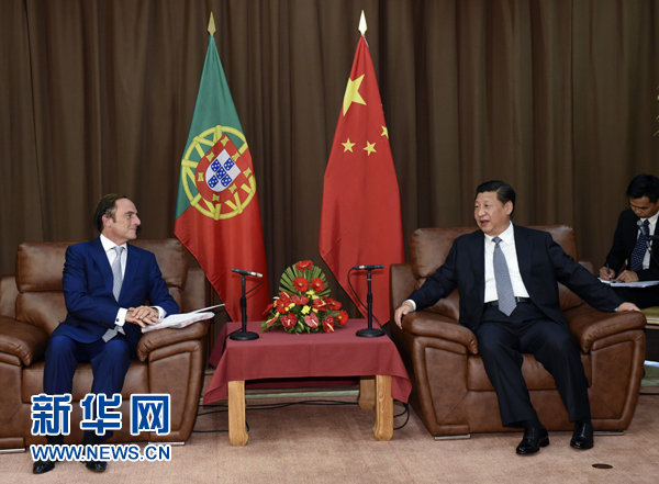 ????波塔斯表示,葡中兩國成功解決了澳門問題,為國與國之間解決歷史遺留問題樹立了榜樣。前幾年,當(dāng)葡萄牙面臨經(jīng)濟(jì)困難時,中方向我們提供了寶貴支持和幫助,我們感謝中國。葡方贊賞中國夢,相信中國將為促進(jìn)世界和平與發(fā)展發(fā)揮越來越重要的作用。葡萄牙愿意發(fā)展同中國的全面戰(zhàn)略伙伴關(guān)系,加強(qiáng)政治對話,擴(kuò)大經(jīng)貿(mào)、投資、海洋、旅游等領(lǐng)域合作。葡萄牙經(jīng)濟(jì)正在好轉(zhuǎn),歡迎中國企業(yè)積極參與其中。葡方愿意積極促進(jìn)歐盟同中國關(guān)系發(fā)展。波塔斯祝賀習(xí)近平拉美之行取得成功,表示葡方愿意利用自身優(yōu)勢,同中方加強(qiáng)在拉美、非洲事務(wù)中的合作。