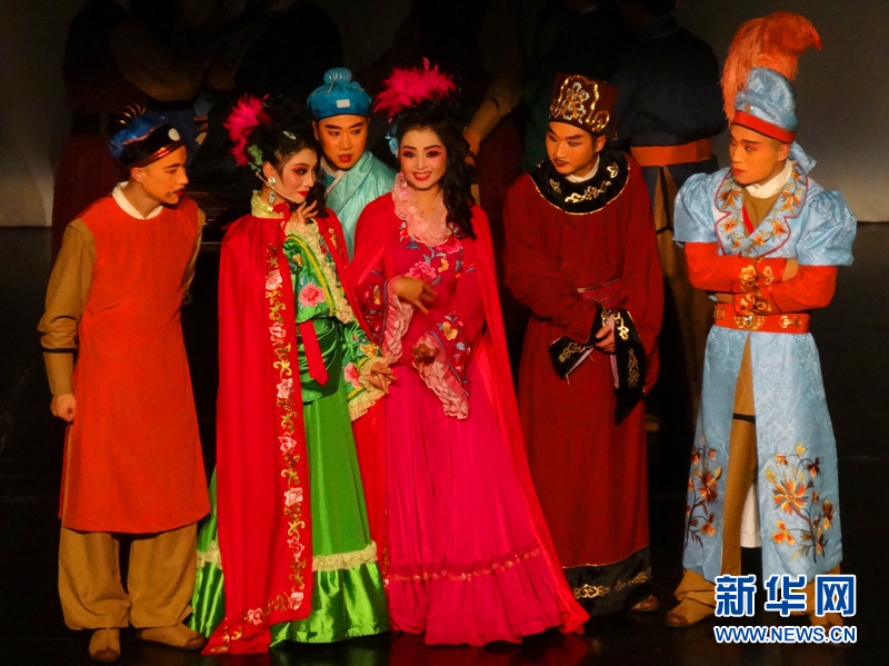9月18日晚,在西班牙巴塞羅那,中國貴州京劇院給當?shù)赜^眾帶來的京劇版《堂吉訶德》。圖為演員在臺上表演(記者周喆攝)