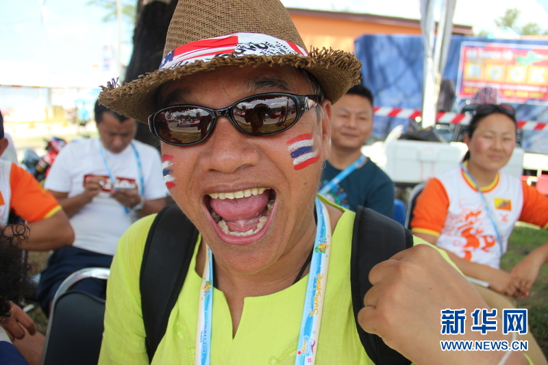 ??? 11月16日,泰國民眾為泰國運動健兒加油。中國體育代表團(tuán)16日在泰國普吉舉行的第四屆亞洲沙灘運動會上勇奪2枚金牌和2枚銅牌。當(dāng)天比賽全部結(jié)束時,中國隊以3金2銀5銅的成績暫列獎牌榜第五,東道主泰國隊以9金11銀12銅的成績暫列金牌榜和獎牌榜第一。新華社發(fā)(塔納攝)