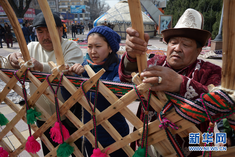 ????4月4日、5日,在阿拉木圖舉辦首界氈房節(jié)。穿著民族服裝的民間藝人搭起具有悠久傳統(tǒng)的哈薩克氈房。氈房上部為穹形,下部為圓柱形,四壁有網(wǎng)狀的木桿搭成整個(gè)氈房的骨架,外包白氈。氈房里四周是掛毯,地上是花氈地毯,上面刺著各種圖案,令人賞心悅目。哈薩克斯坦舉辦這次活動是為了將哈薩克氈房列入世界非物質(zhì)文化遺產(chǎn)名錄。(文/盧敬利 圖/葉蓮娜)