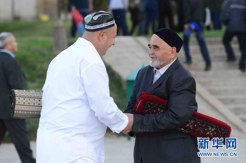 9月24日,在烏茲別克斯坦首都塔什干哈斯特·伊瑪姆建筑群清真寺廣場(chǎng),人們參加古爾邦節(jié)禮拜。當(dāng)天,烏茲別克斯坦各地慶祝伊斯蘭教傳統(tǒng)節(jié)日古爾邦節(jié)?!肮艩柊罟?jié)”亦稱“宰牲節(jié)”,是伊斯蘭教三大節(jié)日之一。 新華社記者沙達(dá)提 攝