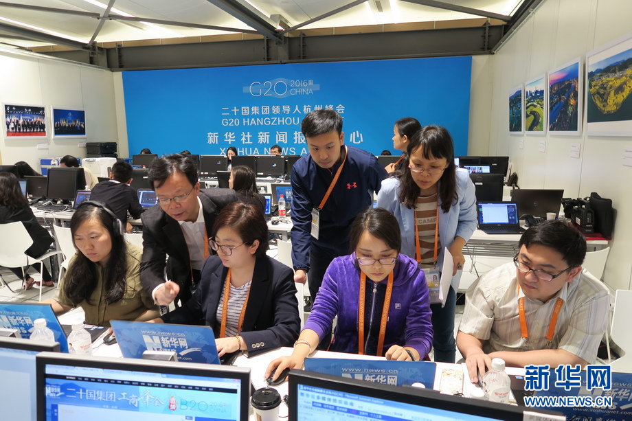 二十國集團領(lǐng)導(dǎo)人第十一次峰會9月4日至5日在浙江杭州舉行。峰會新聞中心一派繁忙景象,境內(nèi)外各路媒體記者使出“洪荒之力”,實時報道峰會動態(tài)。新華網(wǎng)記者 陳競超 攝