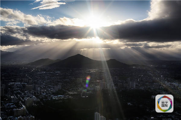 智利圣盧西亞山觀景臺(tái)上看到的首都圣地亞哥市貌。(新華社/衛(wèi)星社)