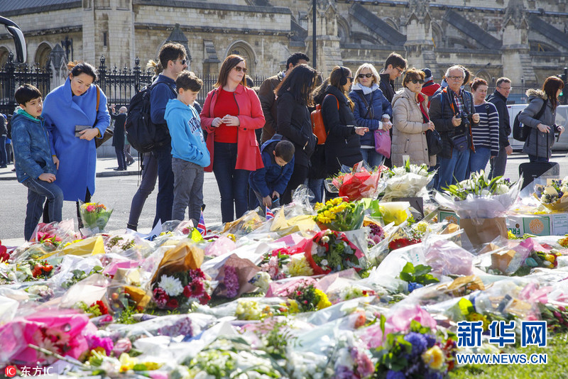 英國民眾在議會(huì)外擺放鮮花 哀悼恐襲受害者(組圖)