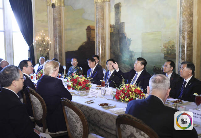 當(dāng)?shù)貢r(shí)間4月7日,國家主席習(xí)近平在美國佛羅里達(dá)州海湖莊園同美國總統(tǒng)特朗普舉行中美元首第二場正式會晤。這是習(xí)近平出席特朗普舉行的工作午宴。(新華社記者蘭紅光攝)