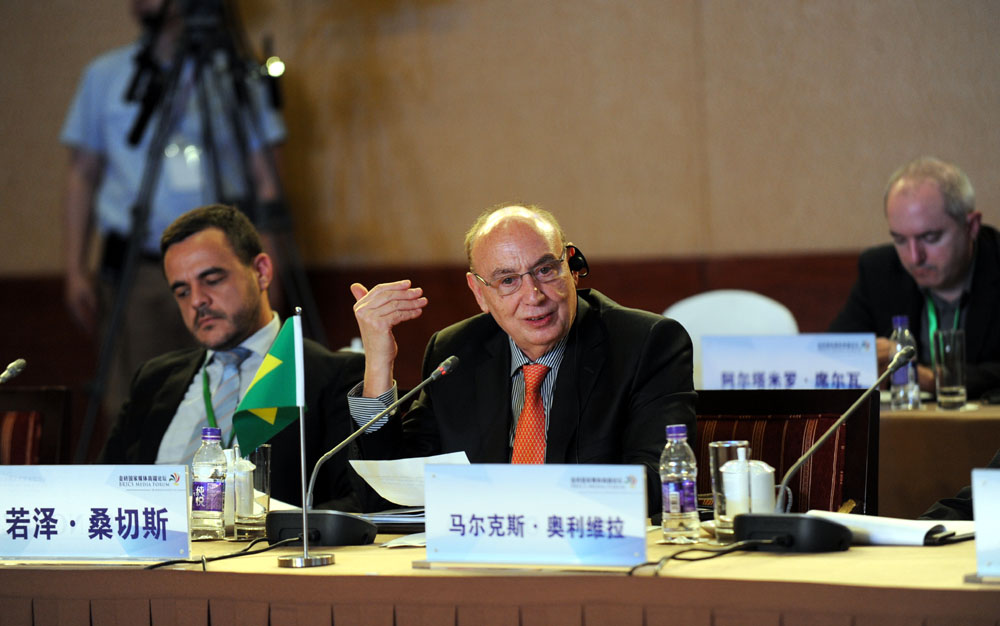 金磚國(guó)家媒體高端論壇開幕式6月8日在北京舉行。圖為論壇共同主席、巴西金融資訊集團(tuán)總裁若澤·桑切斯發(fā)表講話。 新華網(wǎng) 孫韜 攝