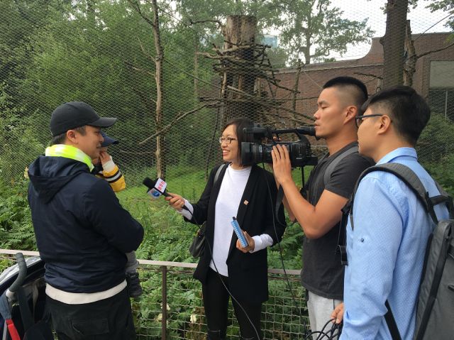 “這幾天這邊下雨,天氣比較涼爽,它們都表現(xiàn)得很適應(yīng)。第一天下雨的時(shí)候,‘夢(mèng)夢(mèng)’就表現(xiàn)得很興奮,雖然沒有到室外活動(dòng),但是它在室內(nèi)就感受到溫度的變化。通過監(jiān)控,我們看到,它在室內(nèi)活動(dòng)場(chǎng)玩得很高興,不停地到門口那邊,想要看看它的新家……”