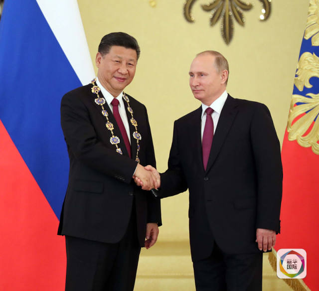 4日下午會談結(jié)束后,普京總統(tǒng)向習近平主席授予俄羅斯國家最高榮譽勛章——“圣安德烈”勛章。