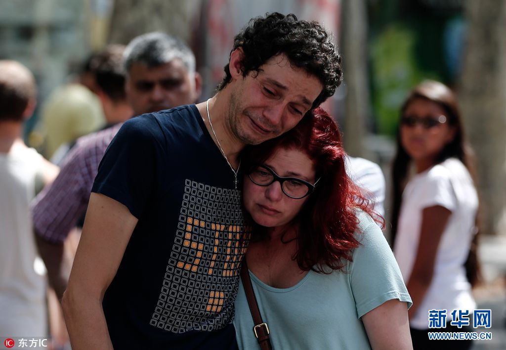 當(dāng)?shù)貢r間2017年8月18日,西班牙巴塞羅那,當(dāng)?shù)孛癖婞c燭獻花悼念恐襲事件遇難者。17日,一輛白色貨車在巴塞羅那市中心蘭布拉大道加泰羅尼亞廣場附近沖撞人群,據(jù)媒體報道,死亡人數(shù)已經(jīng)升至14人。(圖片來源:東方IC)