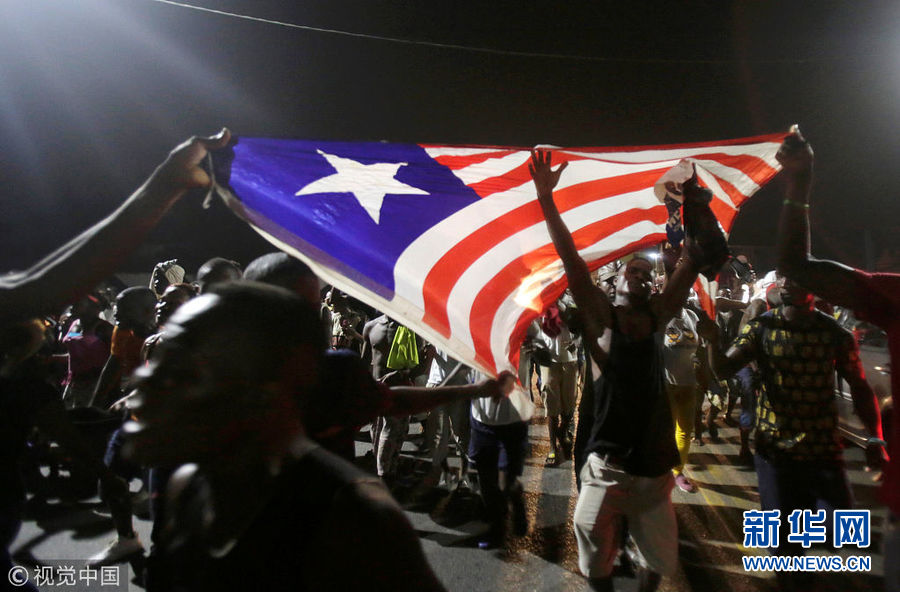 前世界足球先生維阿當選利比里亞總統(tǒng) 支持者上街慶祝