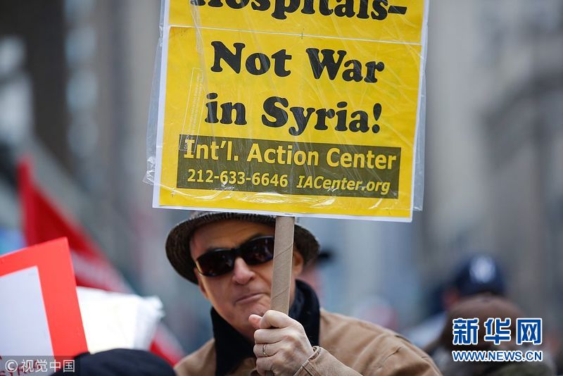 美國民眾舉行反戰(zhàn)游行 抗議美英法聯(lián)軍襲擊敘利亞
