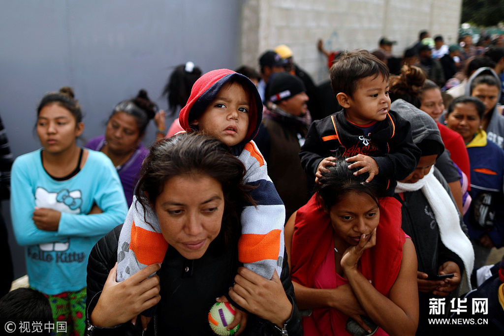 ??? 當?shù)貢r間4月27日,墨西哥提華納,中美洲移民領取早餐。一批中美洲尋求避難人群抵達墨西哥北部邊陲城市提華納,距離他們的最終目的地——美國加利福尼亞州僅“一步之遙”。(圖片來源:視覺中國)