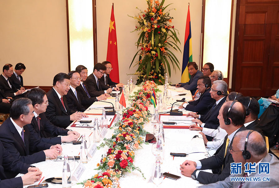 習(xí)近平強(qiáng)調(diào),中毛都是發(fā)展中國(guó)家,有著相似的發(fā)展經(jīng)歷和發(fā)展任務(wù)。當(dāng)前,中毛關(guān)系發(fā)展面臨新的重要機(jī)遇。我們要保持高層交往勢(shì)頭,加強(qiáng)政府部門(mén)、立法機(jī)構(gòu)、地方等往來(lái),繼續(xù)在涉及彼此核心利益和重大關(guān)切問(wèn)題上相互理解和支持。要挖掘務(wù)實(shí)合作潛力,提高雙方貿(mào)易和投資自由化便利化水平,早日商簽中毛自由貿(mào)易協(xié)定,發(fā)揮毛里求斯參與共建“一帶一路”的獨(dú)特區(qū)位優(yōu)勢(shì),加強(qiáng)溝通對(duì)接,深化廣泛領(lǐng)域合作。要加強(qiáng)人文交流,促進(jìn)相互了解。中方愿同毛方加強(qiáng)氣候變化南南合作,密切在國(guó)際事務(wù)中協(xié)作,維護(hù)發(fā)展中國(guó)家共同利益。