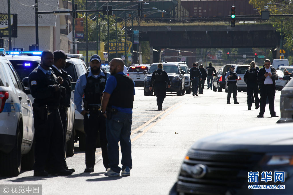 當(dāng)?shù)貢r(shí)間2018年10月22日,美國芝加哥,當(dāng)?shù)嘏e行一場葬禮后發(fā)生襲擊,共有6人遭到槍擊,目前當(dāng)?shù)鼐揭言趯υ摪高M(jìn)行調(diào)查。(圖片來源:視覺中國)