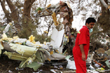 營(yíng)救人員對(duì)墜機(jī)現(xiàn)場(chǎng)進(jìn)行檢查